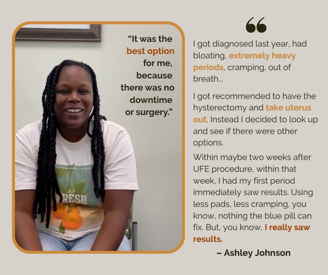 Our non-surgical UAE (Uterine Artery Embolization) treatment is holistic, effective, and designed to help you reclaim your health, your confidence, and your future.